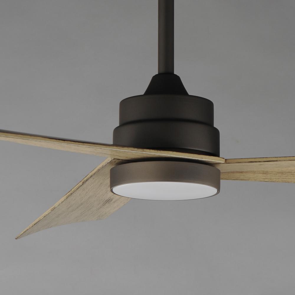 Sharp angular blades come together at the center housing of this fan for a modern, yet transitional look. Available in finishes that match most interior spaces, select from Matte Black, Satin Nickel with Greywood, Natural Aged Brass with White Blades and C