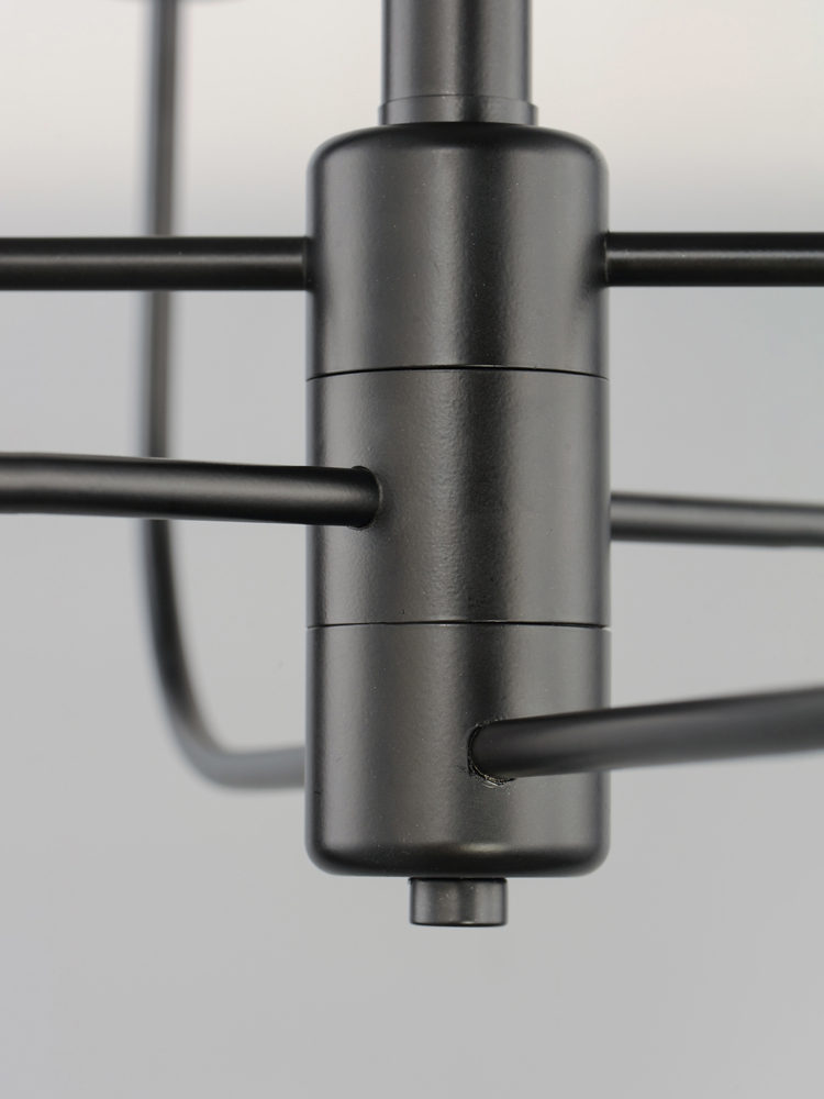 Arms sweep upward from an adjustable collector to create a minimal yet stately design. Available in Black, Satin Brass, and Satin Nickel, this collection provides a transitional look for a variety of settings.