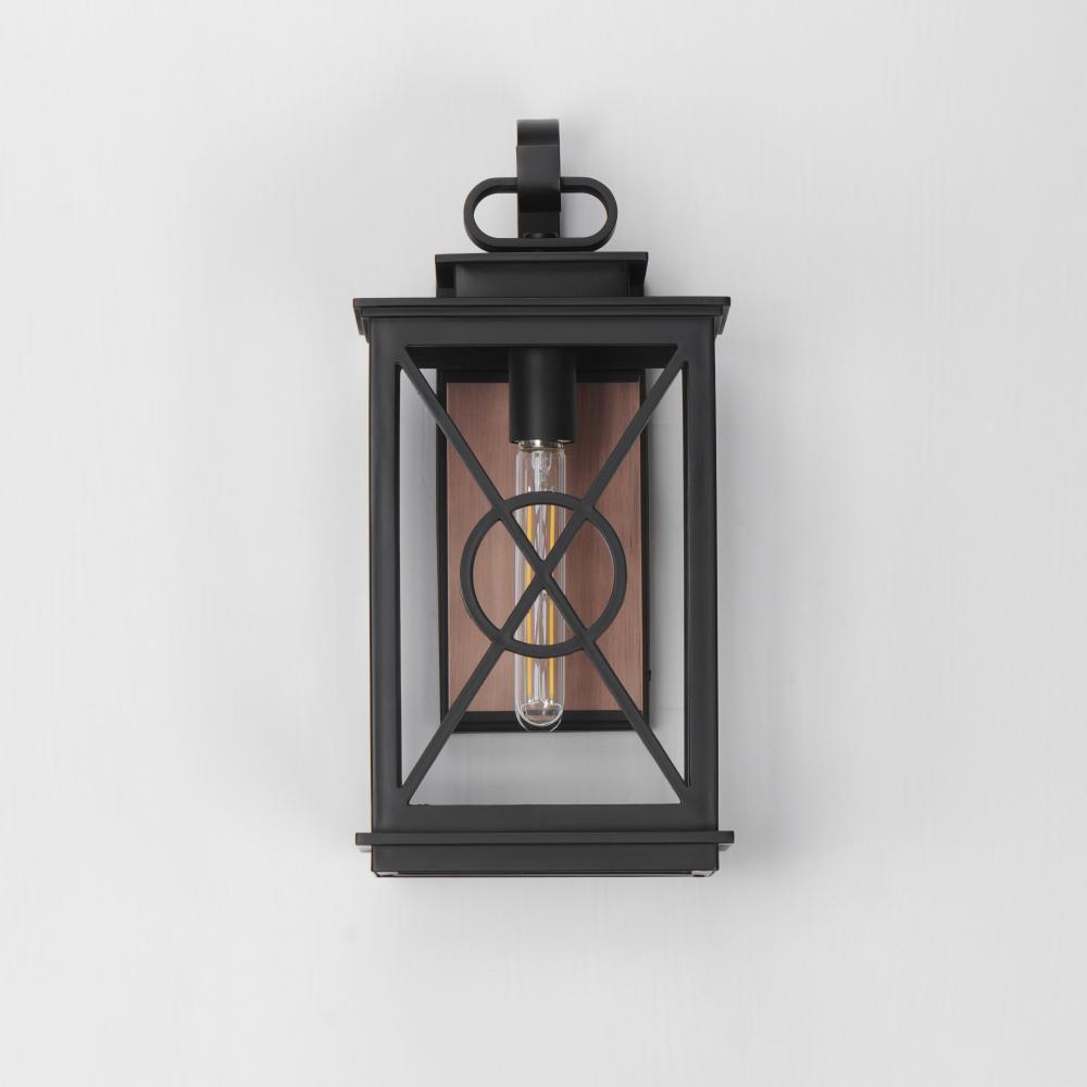 Styled as a classic early American coach lantern, the Yorktown sconces offer an established exterior design aesthetic with the modern engineering to withstand the harshest climates. A crossing pattern of the material wraps clear glass panes that protects t
