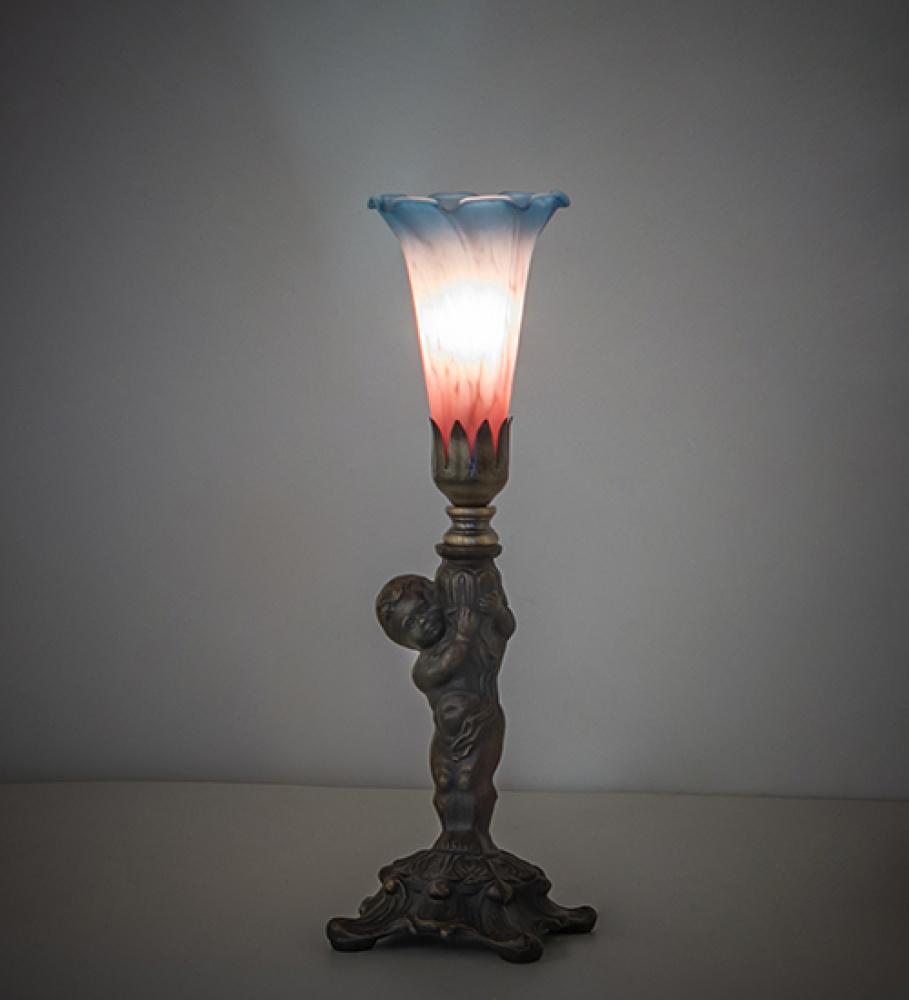 12" High Pink/Blue Tiffany Pond Lily Cherub Mini Lamp