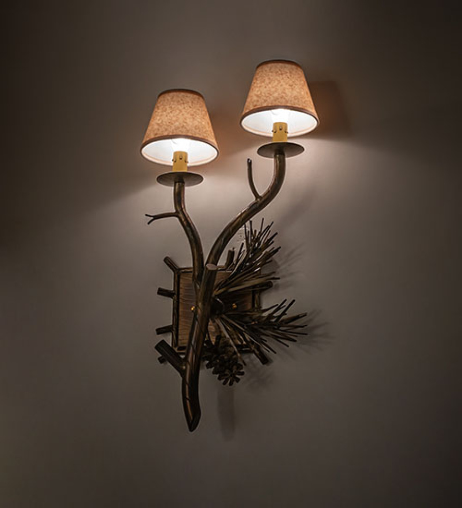 12" Wide Pinewood 2 Light Right Wall Sconce