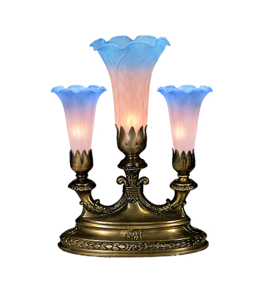 13" High Pink/Blue Tiffany Pond Lily 3 LT Mantelabra Accent Lamp