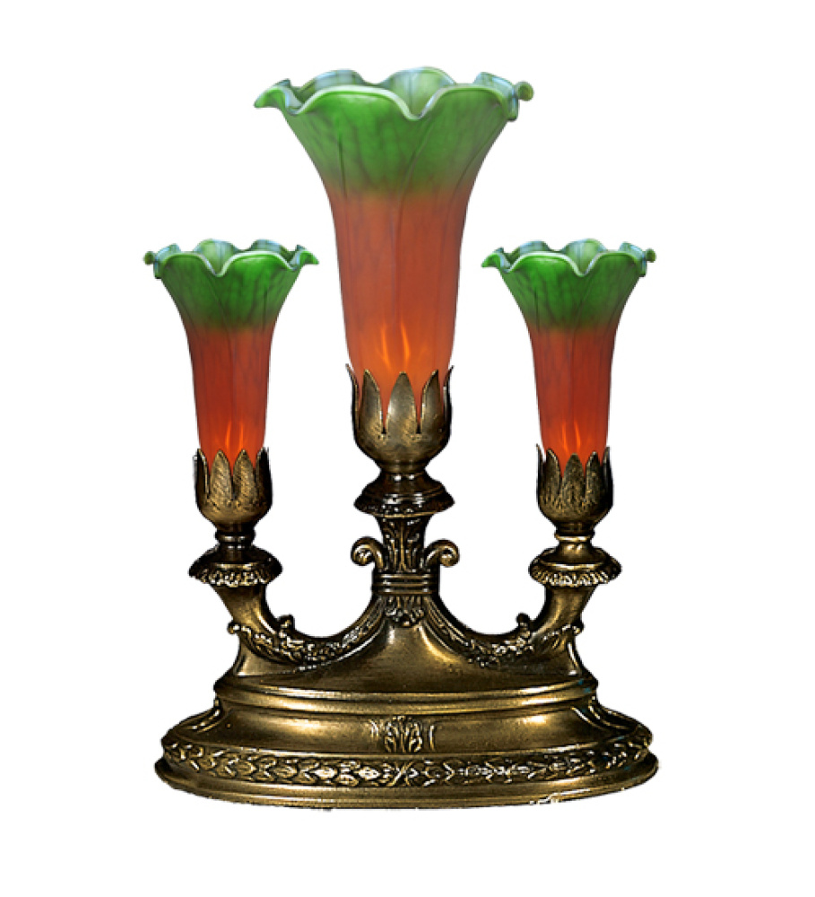 13"H Amber/Green Tiffany Pond Lily 3 LT Mantelabra Accent Lamp