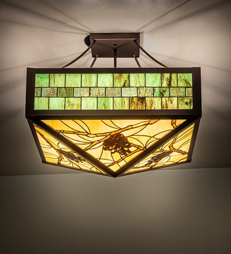 23" Square Pinecone Ridge Semi-Flushmount