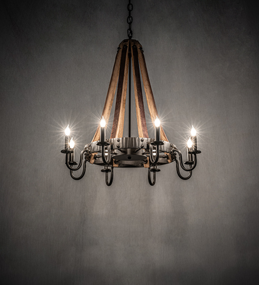 27" Wide Barrel Stave Madera 8 Light Chandelier