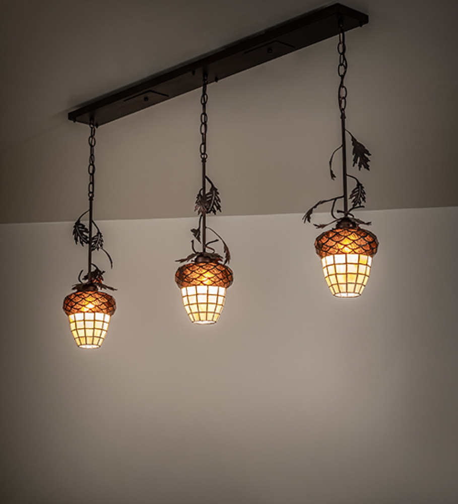 48" Long Oak Leaf & Acorn 3 Light Oblong Island Pendant