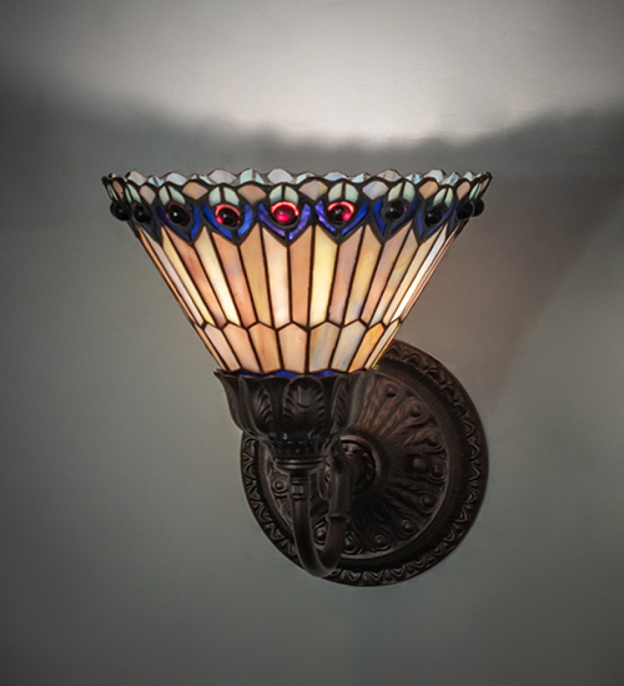 8" Wide Tiffany Jeweled Peacock Wall Sconce