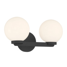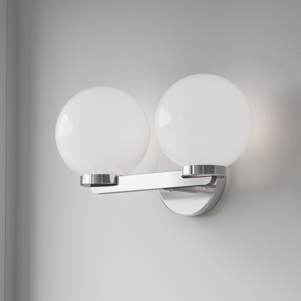 The Ardeva bath light features round shades, inspired by mid-century design aesthetics.
