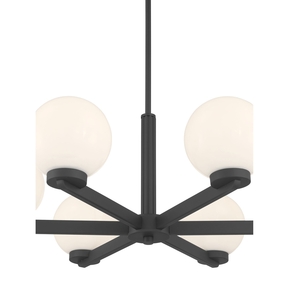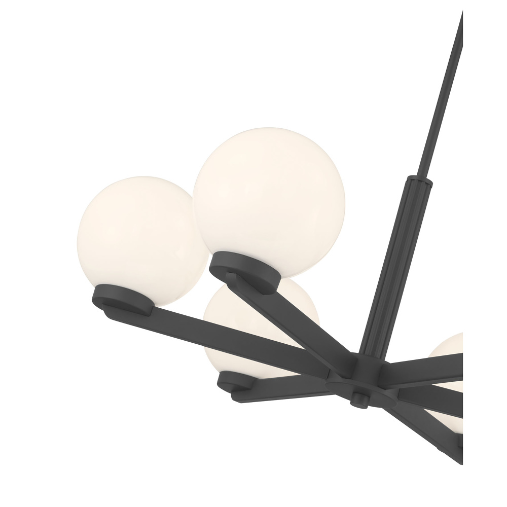Featuring a Matte Black finish with Shiny Opal glass shades.