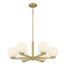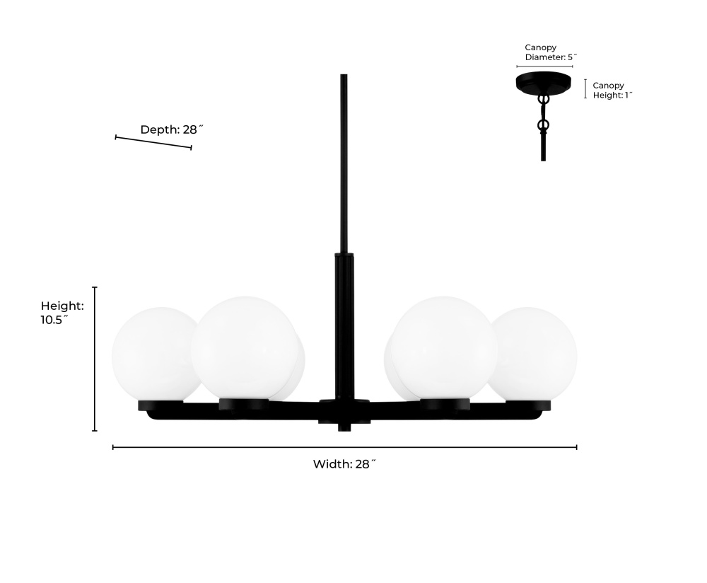 Retro-modern glass globe shades with a shiny opal finish are set atop bold geometric fixtures, infusing the Ardeva Collection with a distinct take on 1970’s design aesthetic. The fixtures are finished in chrome, matte black, or vintage brass and are available as 1-light wall sconce; 2, 3 or 4-light vanity, 4-light island, and 6 or 8-light chandelier. From kitchen and dining to bath and bedroom, this collection fills any home with a warm and ambient glow.