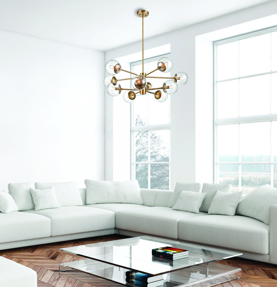 Evoking the golden age of modern American interiors, the Avell Collection brings to life definitive Mid-Century lighting design. The modern gold finish, angled arms and clear glass globes complete the retro look and add a touch of distinction to this classic collection.