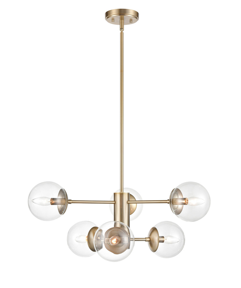 Evoking the golden age of modern American interiors, the Avell Collection brings to life definitive Mid-Century lighting design. The modern gold finish, angled arms and clear glass globes complete the retro look and add a touch of distinction to this classic collection.