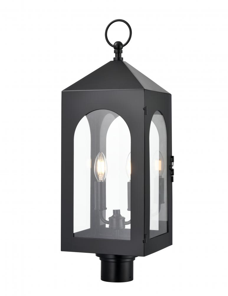 Rustic lines and arched windows give the Bratton Collection of outdoor lighting the simple feel of a quaint European cottage. The understated design of the collection is the perfect complement to stone archways and stucco walls. Finished in powder coat black, the fixtures are available as wall sconces, porch pendants, and post lamps for the driveway, creating a unified exterior lighting aesthetic.