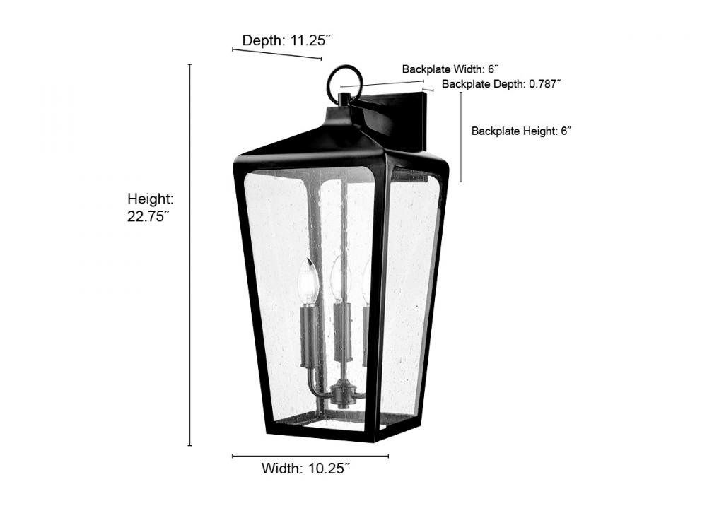This outdoor wall sconce is 10.25 in. width x 22.75 in. height