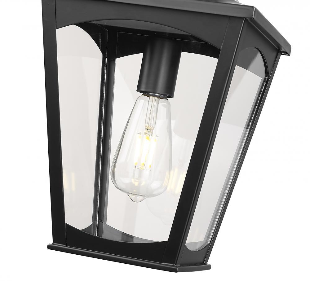 Evocative of Victorian-era carriage house lanterns, the Curry Collection is a contemporary take on traditional style. Available as 1-light and 2-light wall sconces or 1-light hanging or post lamps, the fixtures are constructed of durable steel and finished in powder coat black with arched, clear glass panels. The overall effect is charming and classic and perfectly complements cottage or bungalow home design.