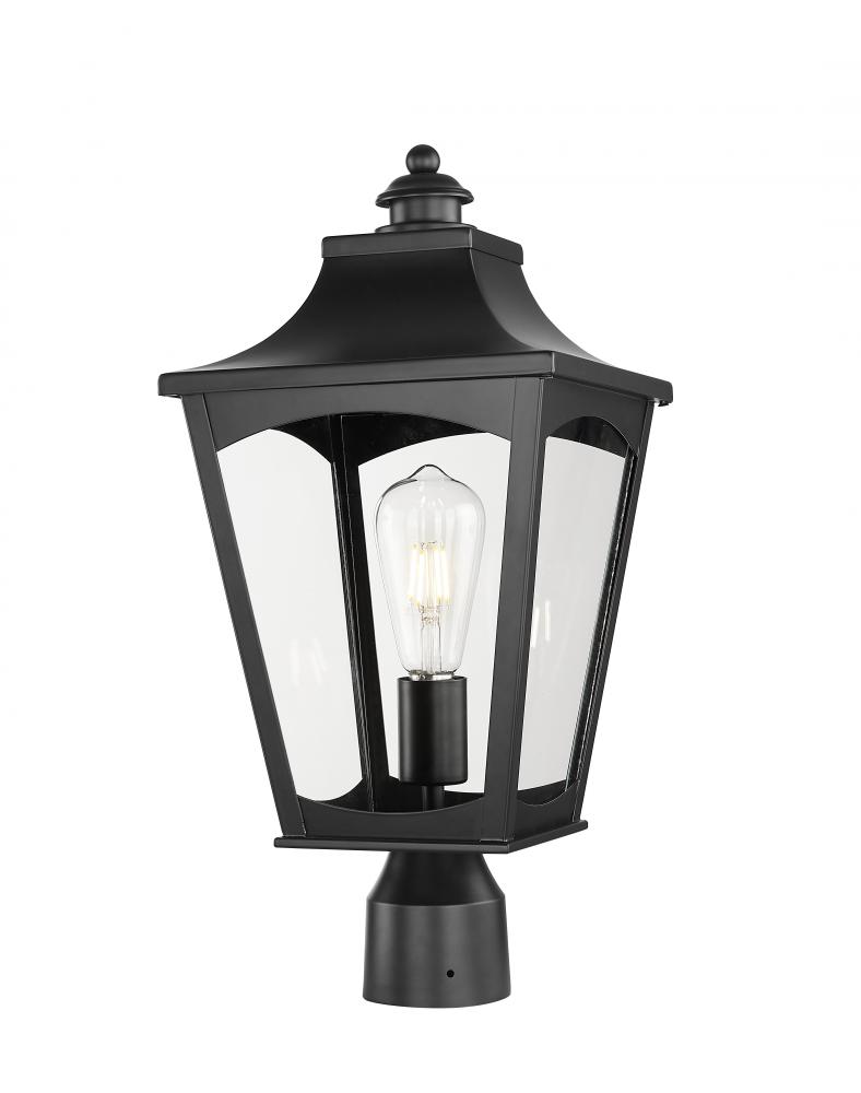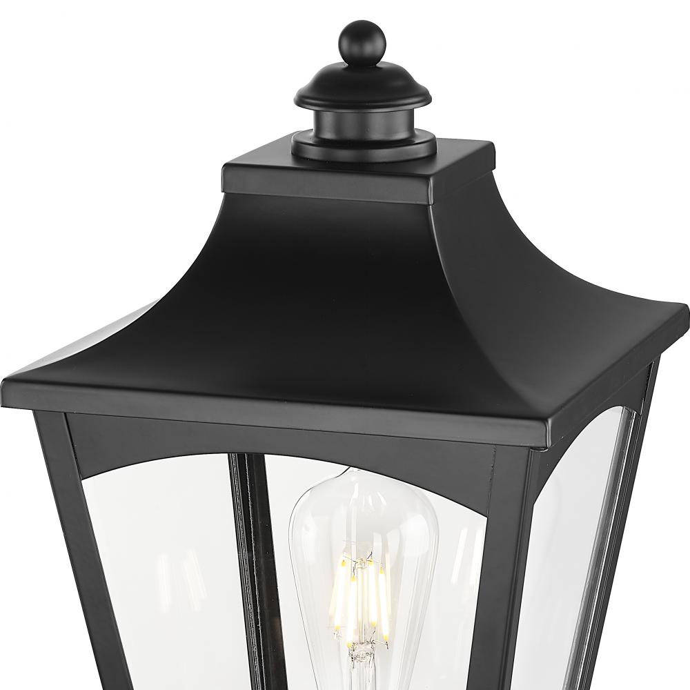 Evocative of Victorian-era carriage house lanterns, the Curry Collection is a contemporary take on traditional style. Available as 1-light and 2-light wall sconces or 1-light hanging or post lamps, the fixtures are constructed of durable steel and finished in powder coat black with arched, clear glass panels. The overall effect is charming and classic and perfectly complements cottage or bungalow home design.