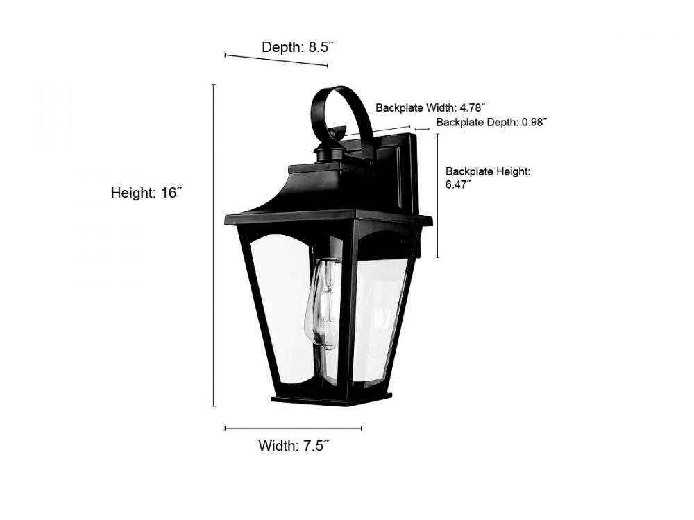 This outdoor wall sconce is 7.5 in. width x 16 in. height