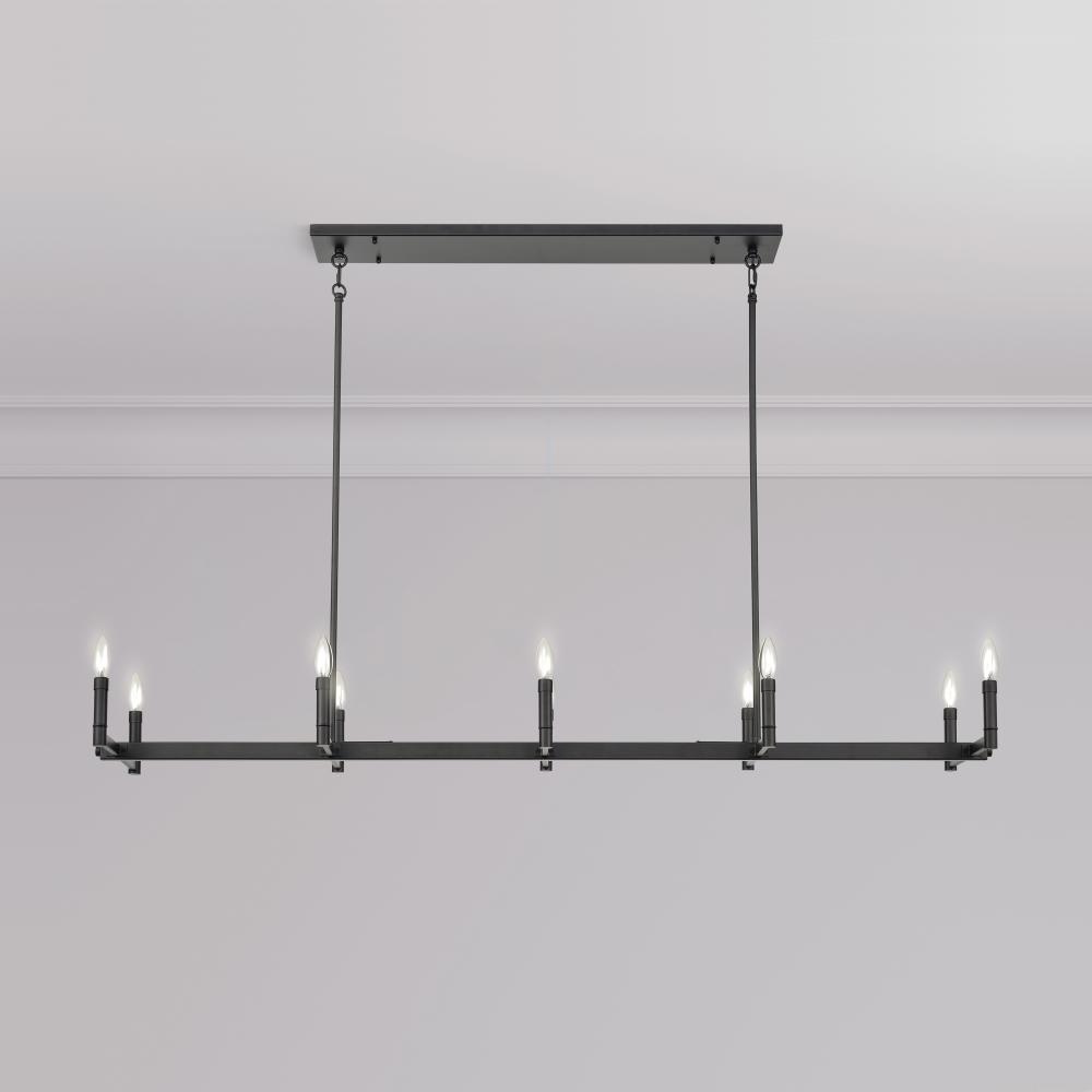 Available in either an 8-light take on the classic wagon style or a 1 design-forward rectangular profile, the Daxley Family of chandelier lighting provides impressive design options. The matte black finish infuses an air of sophistication, and the candle-style bulbs provide the perfect finishing touch. Both refined and bold, this family of fixtures is perfect for dining room or kitchen.