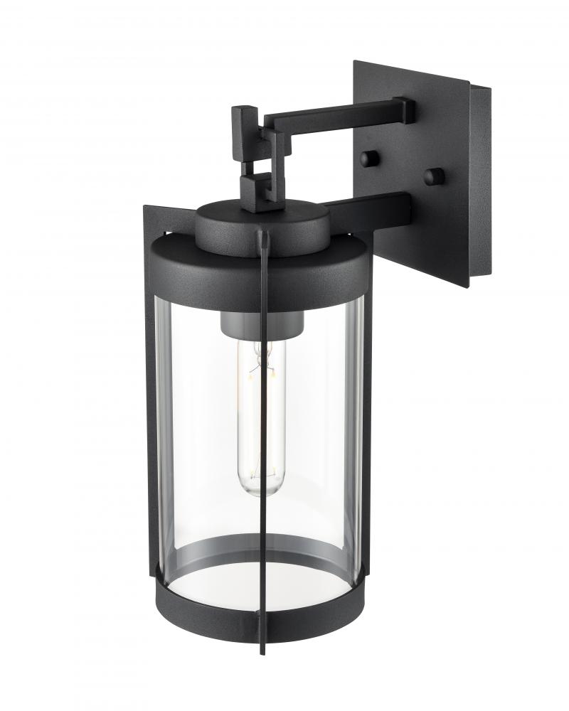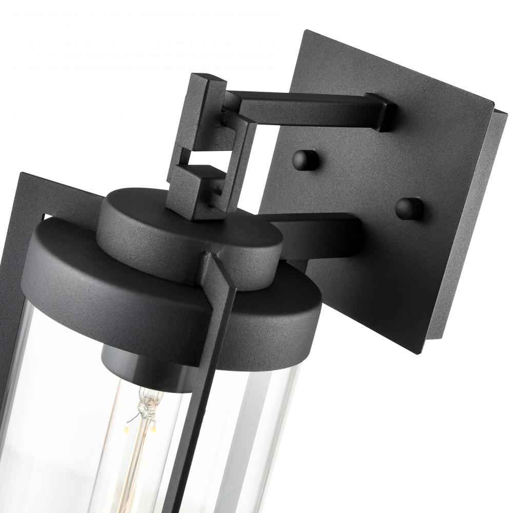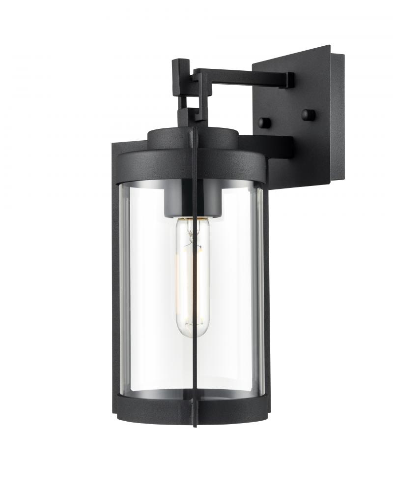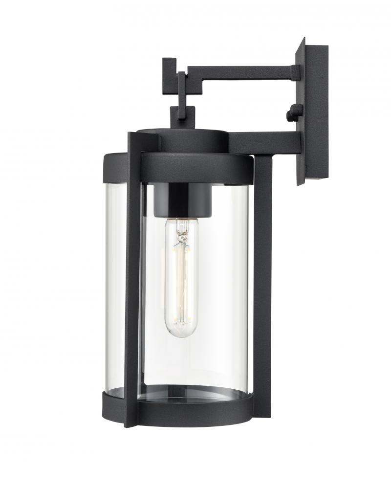 Reimagined classic-style outdoor lighting is the signature of the Ellway Collection. The sconces feature a contemporary spin on standard hook-and-ring lanterns and are available in a rectangle or round profile. Artfully suspended with clear glass panels optimizing luminosity, the overall effect creates a striking appeal. All fixtures are available in textured black for a refined finish.