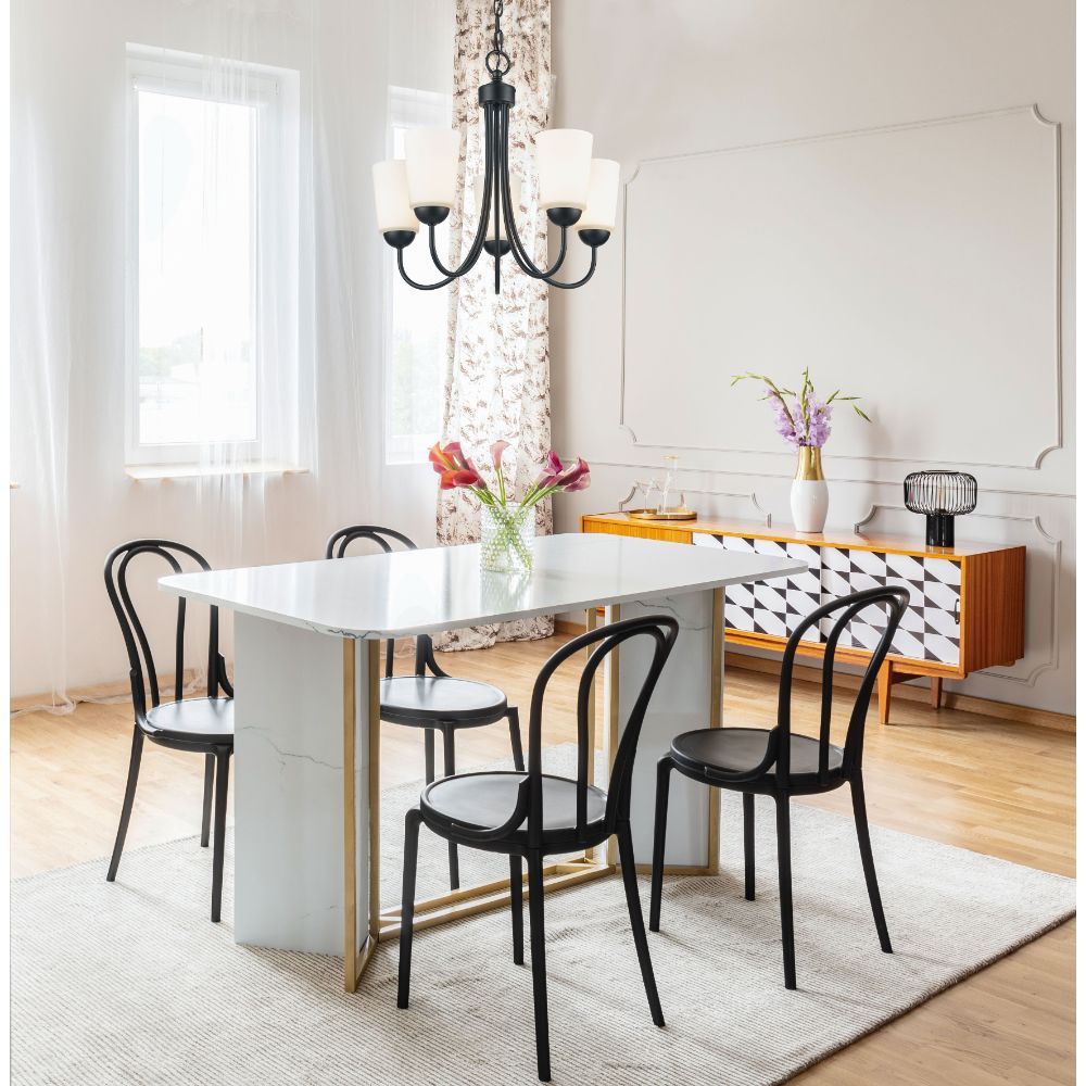 Effortless design enhanced with elegant and sweeping lines is the hallmark of the Ivey Lake Collection. Classically etched white glass globes provide the perfect enhancement for this stately design line with finishes available in either matte black or satin nickel.