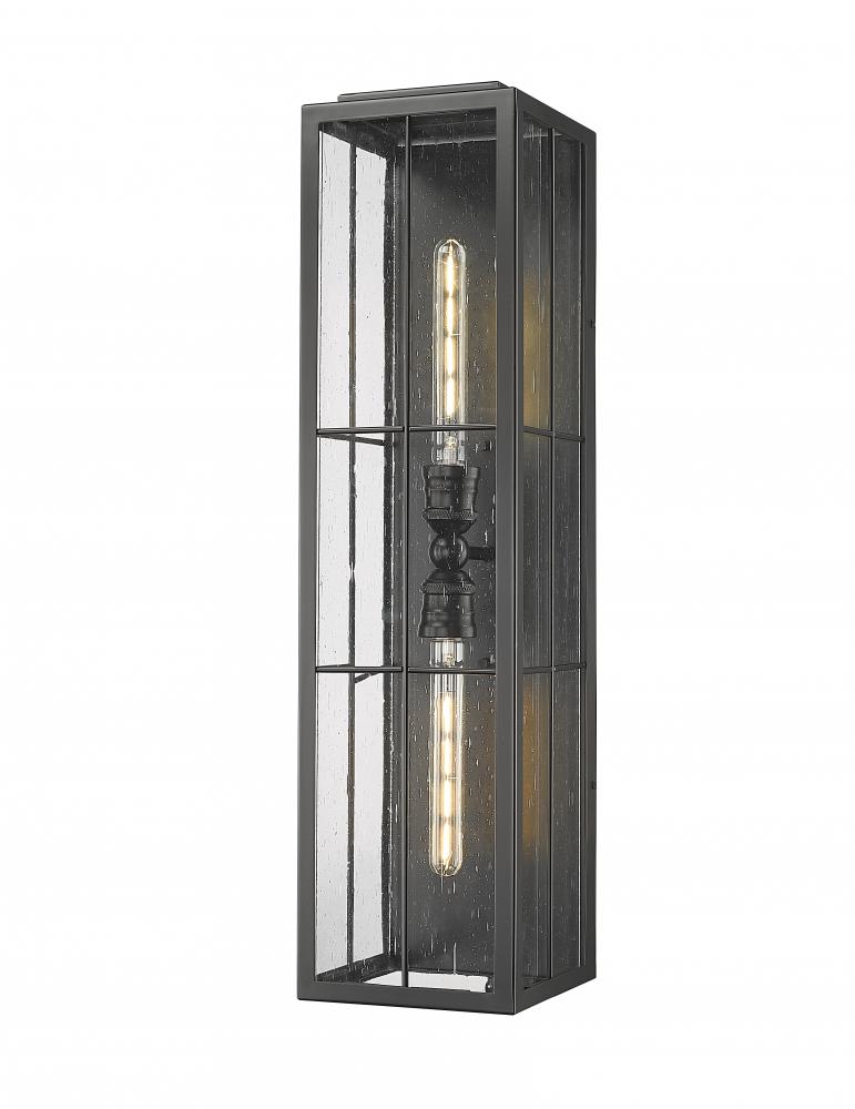 Inspired by industrial design elements, the Jaxson Collection redefines outdoor lighting solutions from the front porch to the end of the drive. Clear seeded glass panels are ensconced in a steel, open cage style fixture, finished in powder coat black, highlighting the classically styled sockets. Available as 2-light outdoor sconces or 1-light hanging or post lamp.