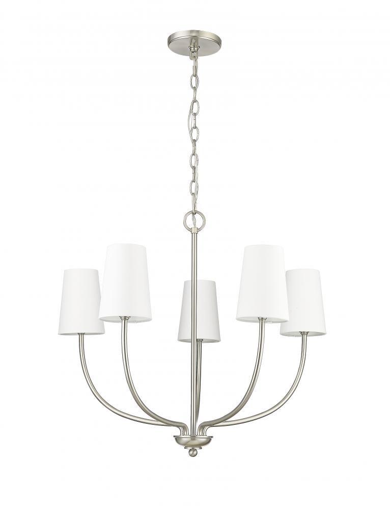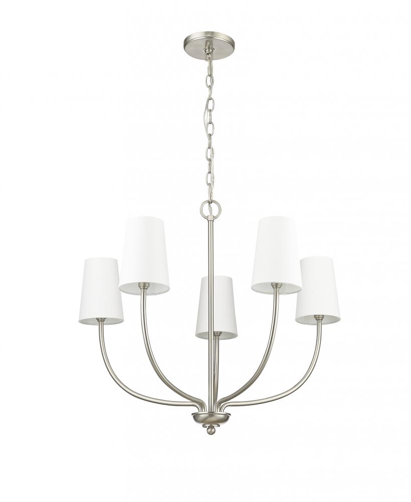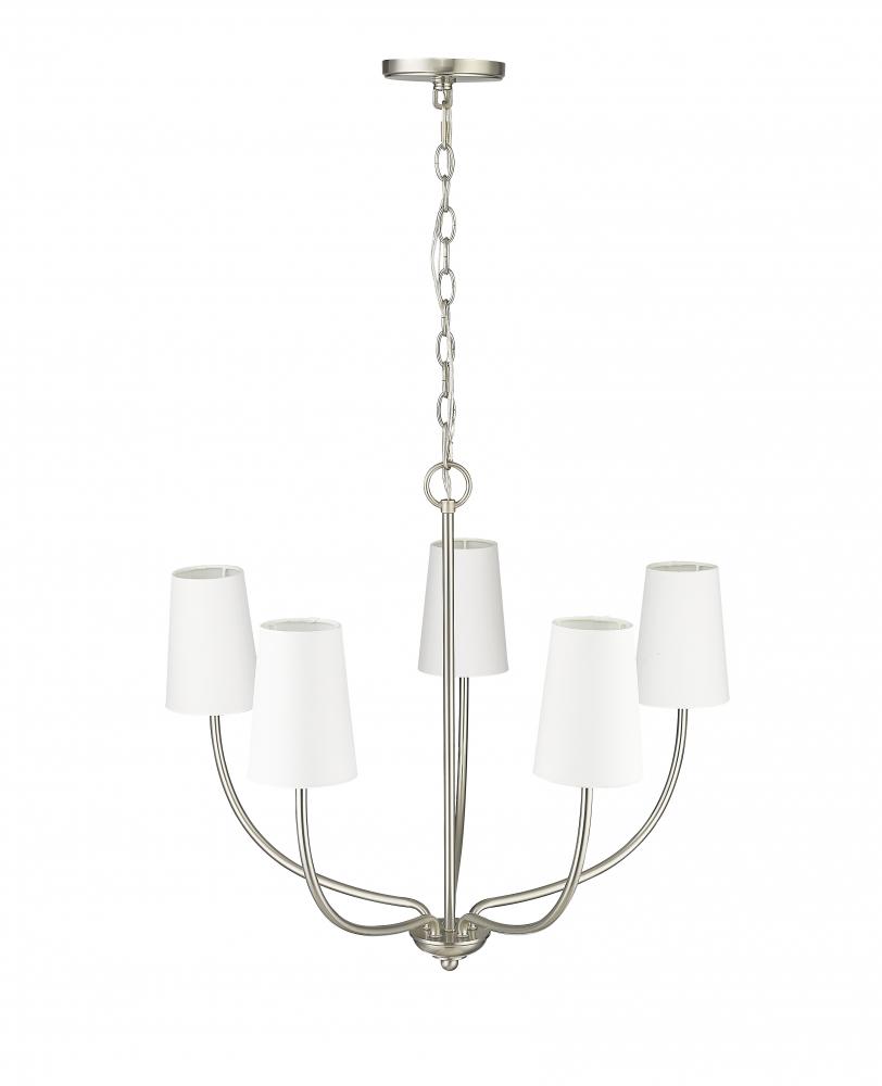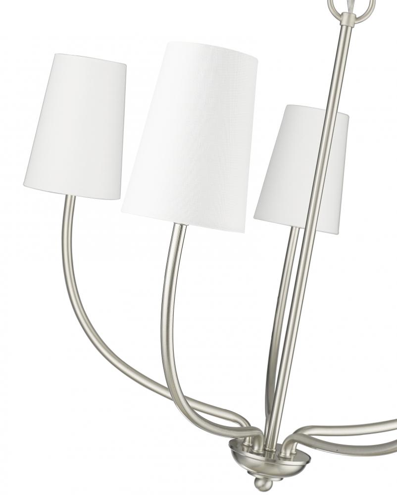 From beach houses to downtown condos, the Kandor Collection of chandeliers creates a light and airy design effect with a breath of casual elegance. Capped with simple, white linen shades, the languid lines of the fixtures curve delicately upward for a crisp, clean profile. Perfect for kitchen island to foyer, the collection is available in 5-light and 8-light options.