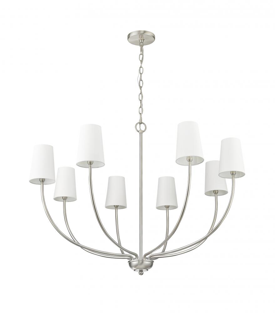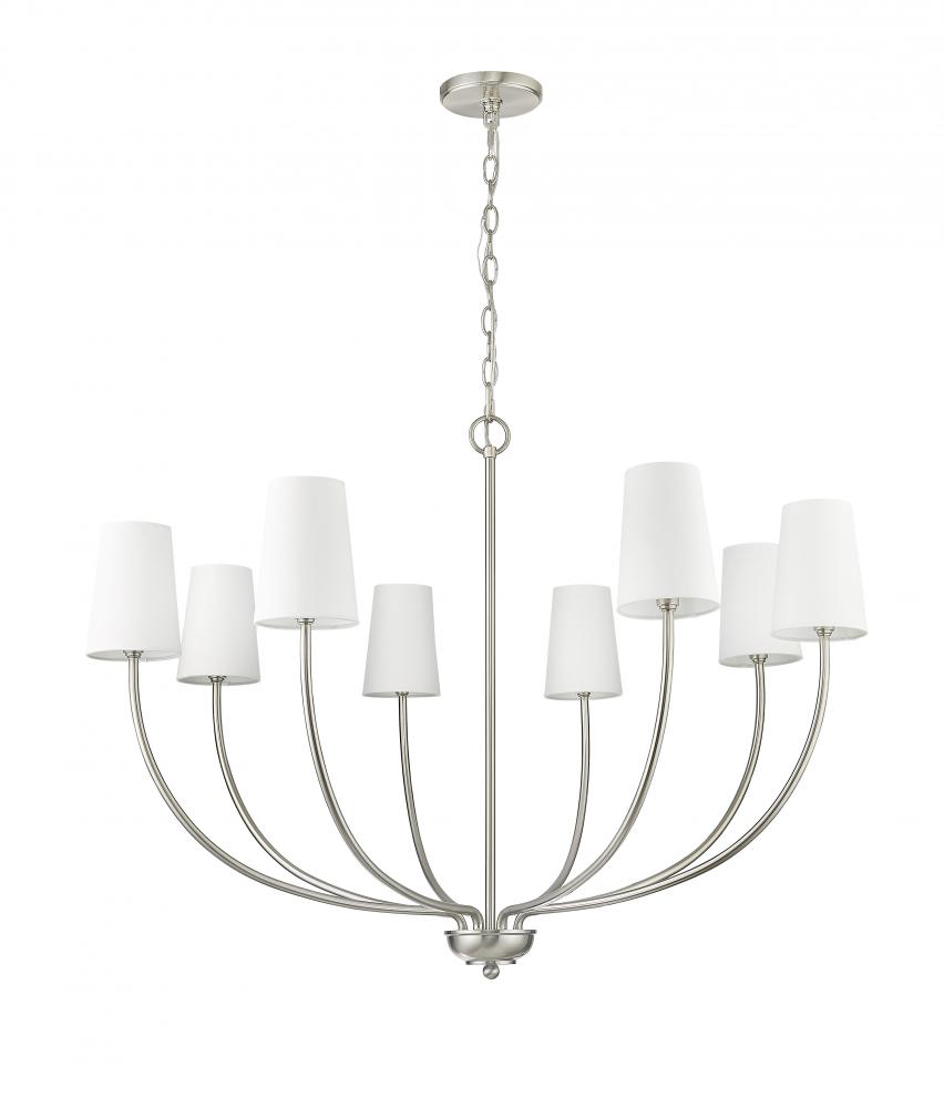 From beach houses to downtown condos, the Kandor Collection of chandeliers creates a light and airy design effect with a breath of casual elegance. Capped with simple, white linen shades, the languid lines of the fixtures curve delicately upward for a crisp, clean profile. Perfect for kitchen island to foyer, the collection is available in 5-light and 8-light options.