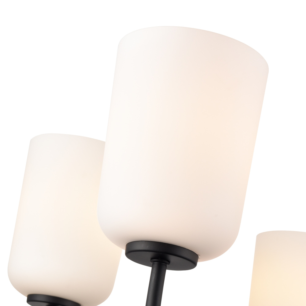 The Laphia Family features sleek lines, a graceful profile, and brilliant white, bell-shaped glass shades creating an ambient glow. The Family is available as sconce, chandelier, pendant, mini-pendant, semi-flush mount, flush mount, and an excellent vanity task light. Perfect for any interior plan from Craftsmen to modern farmhouse, these fixtures are finished in stylish brushed nickel, matte black, or modern gold.