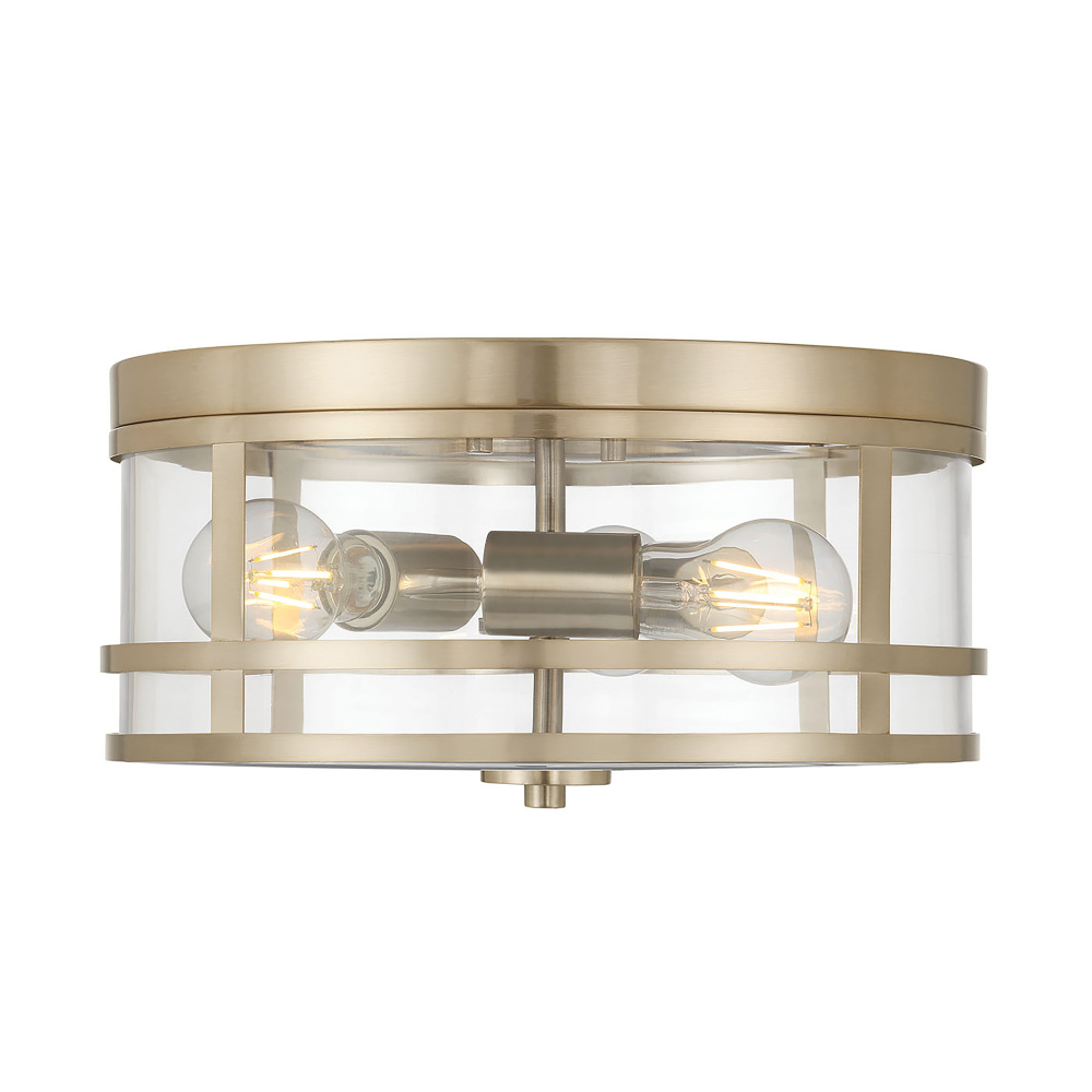 Our Lunden flush mount features decorative bands and a cylindrical body.