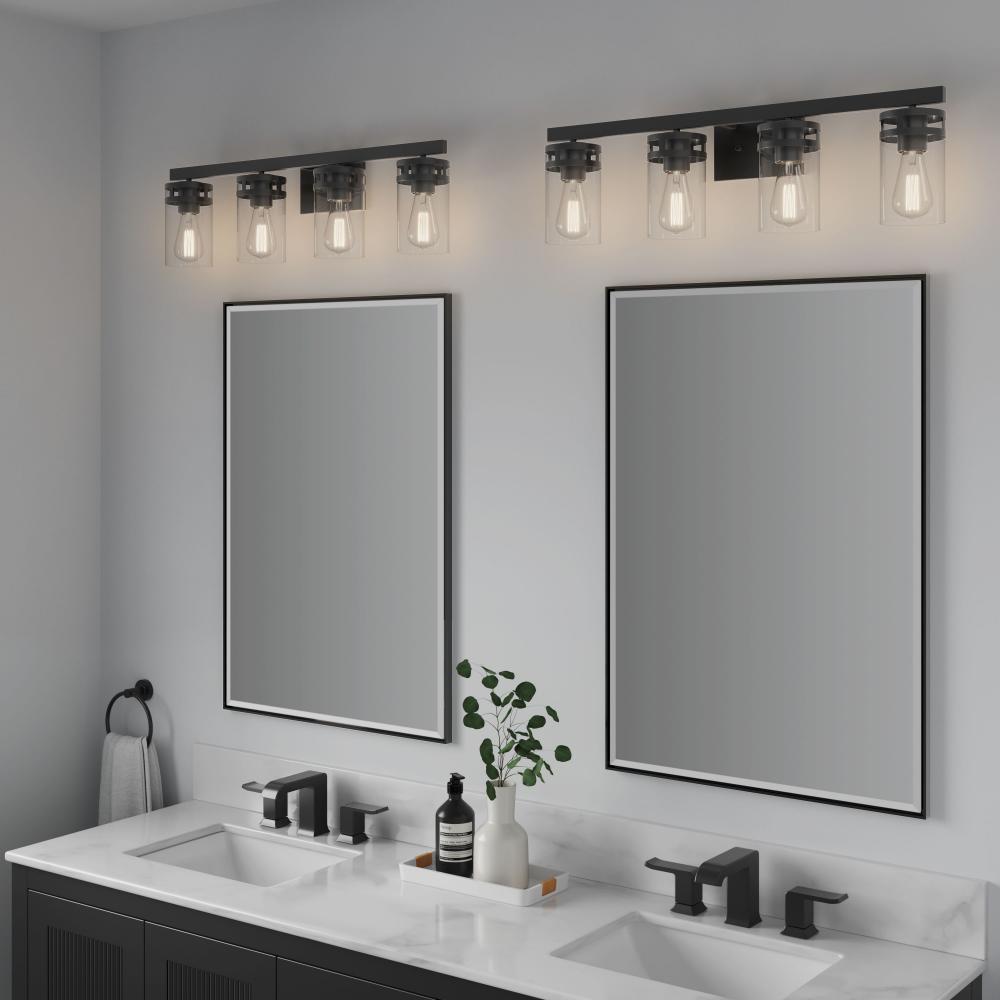 A unique metal banding design forms the signature look for the Lundun Family of vanity lighting. Available in matte black and 2-light, 3-light, and 4-light options, the timeless appeal of the modern industrial design is further enhanced by the crystal-clear glass globes. It’s a luxurious lighting solution for any bath while minimizing shadows.