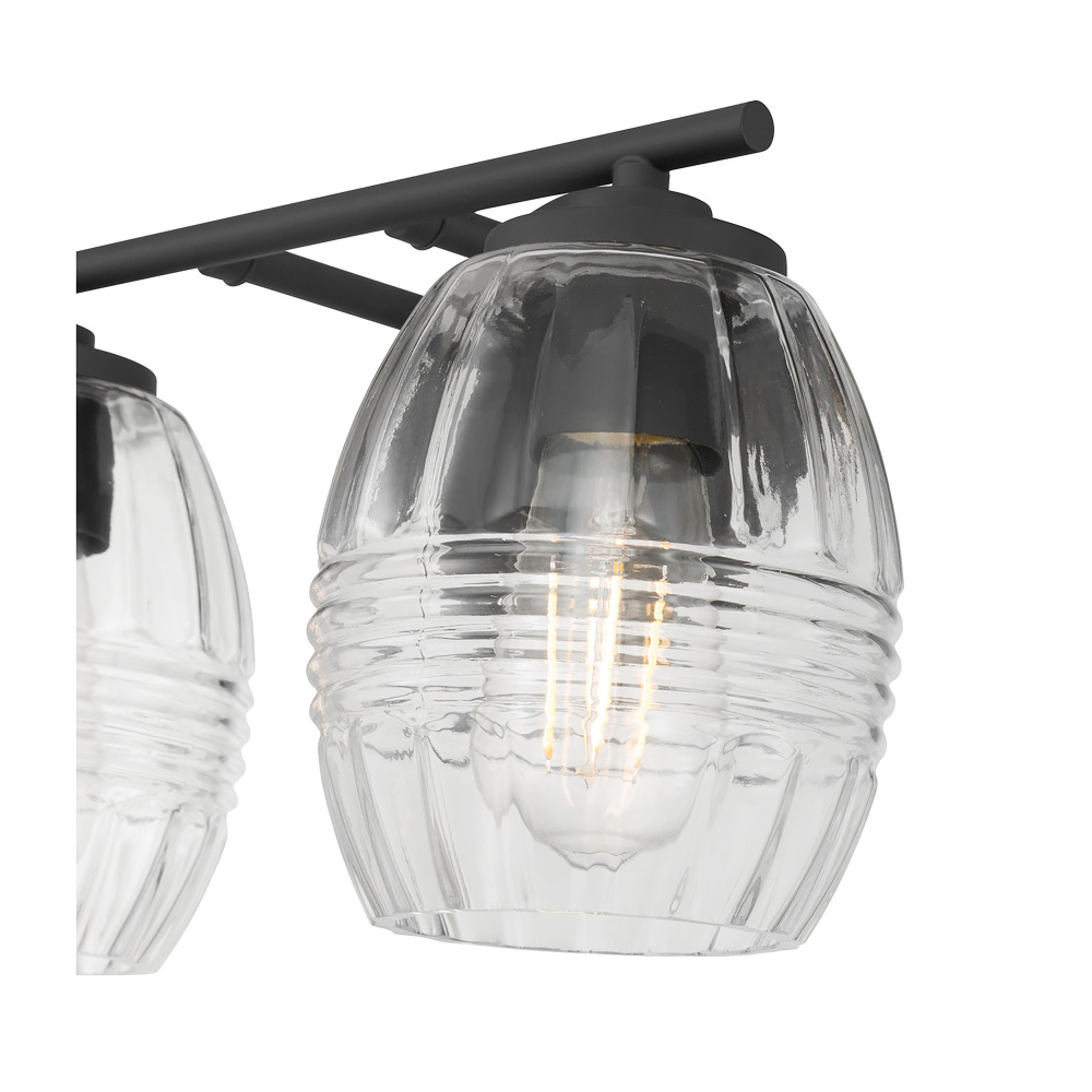 Featuring a Matte Black finish with Clear glass shades.