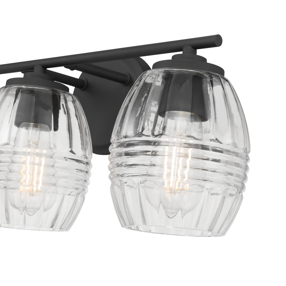 Featuring a Matte Black finish with Clear glass shades.
