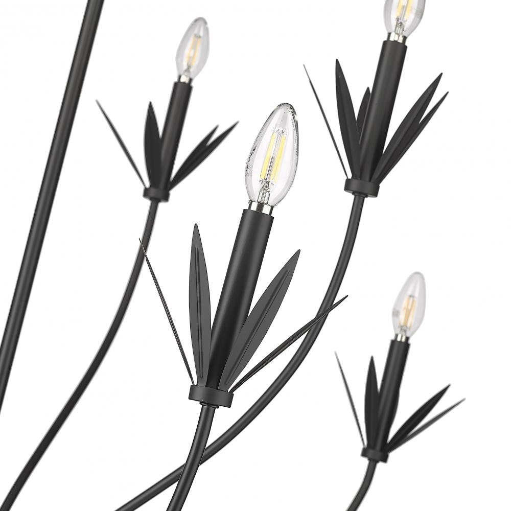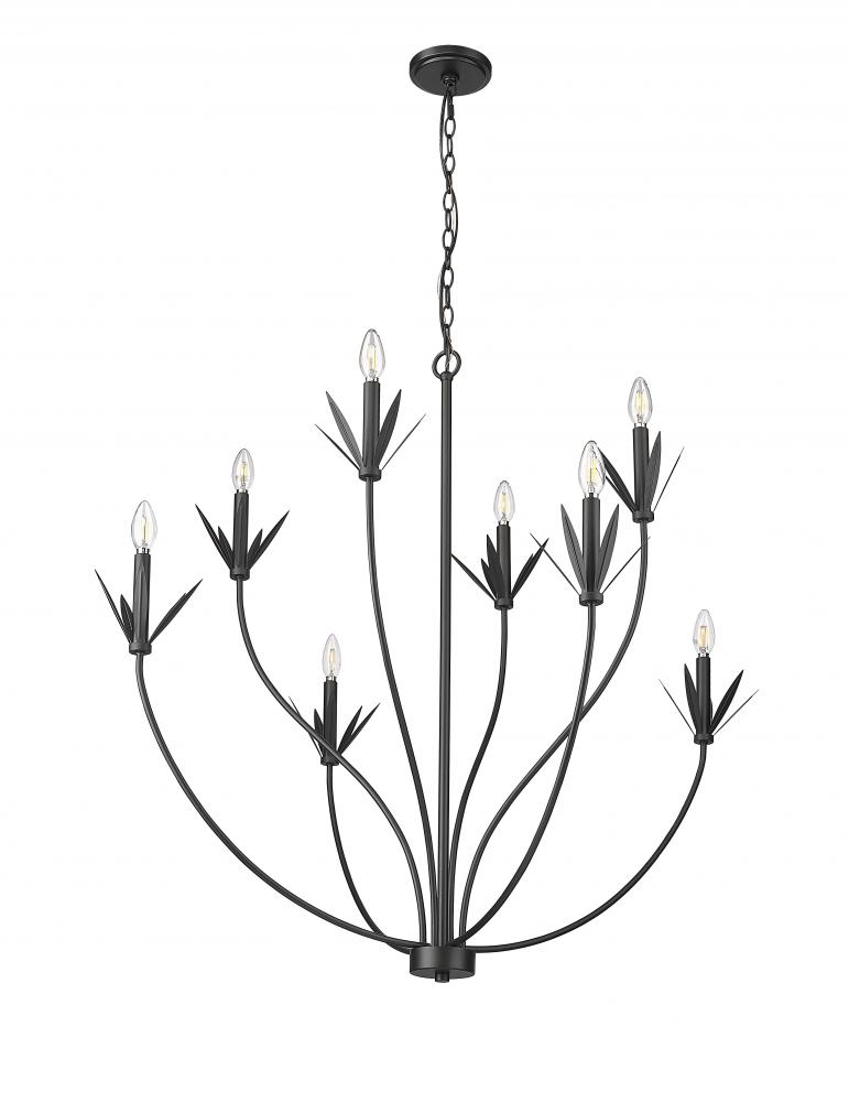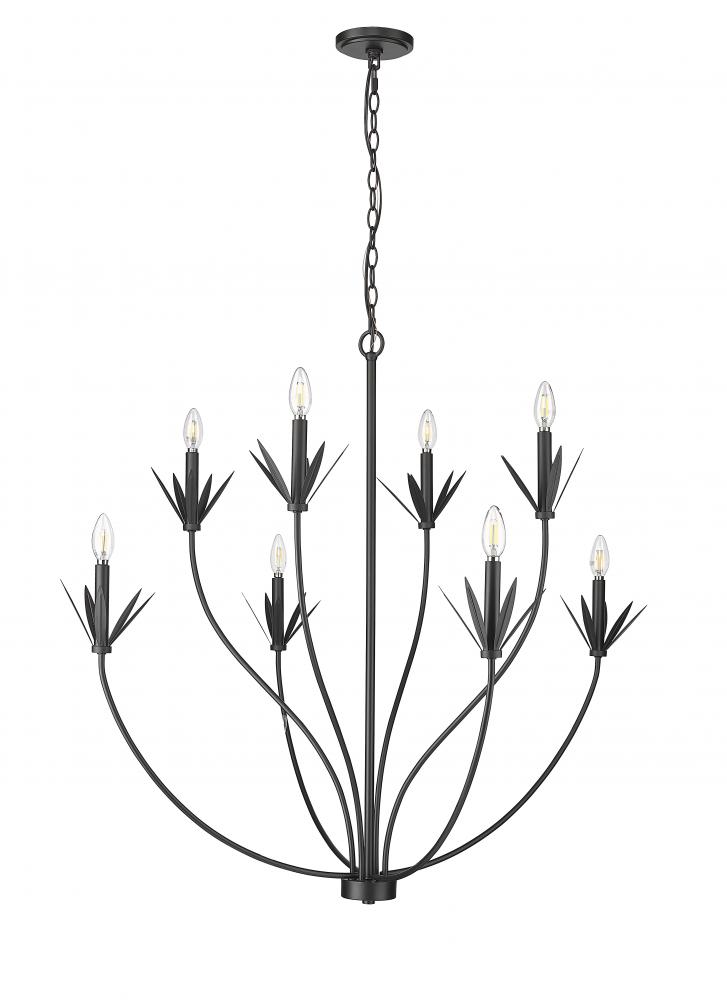The Primrose Collection is defined by chic, linear leaf-shaped flourishes punctuating the fount and candle cups of these chandeliers. The sweeping, gentle curves and modern take on a botanic profile create a joyous effect for any gathering room from farmhouse to penthouse. The fixtures are available in either matte black or textured white with 6-light and 8-light options.