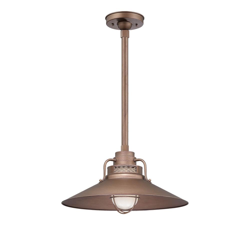From the R Series Collection, this railroad shade (only) has been designed for versatility. This product is constructed in metal and durable. Customize your shade by selecting from a variety of shade finishes. This shade can be converted to a pendant of a wall sconce with the purchase of separate compatible downrod (stems) or arm (gooseneck) accessory.