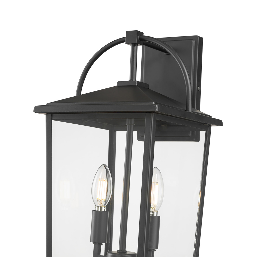 Featuring a Powder Coated Black finish with clear glass panels.