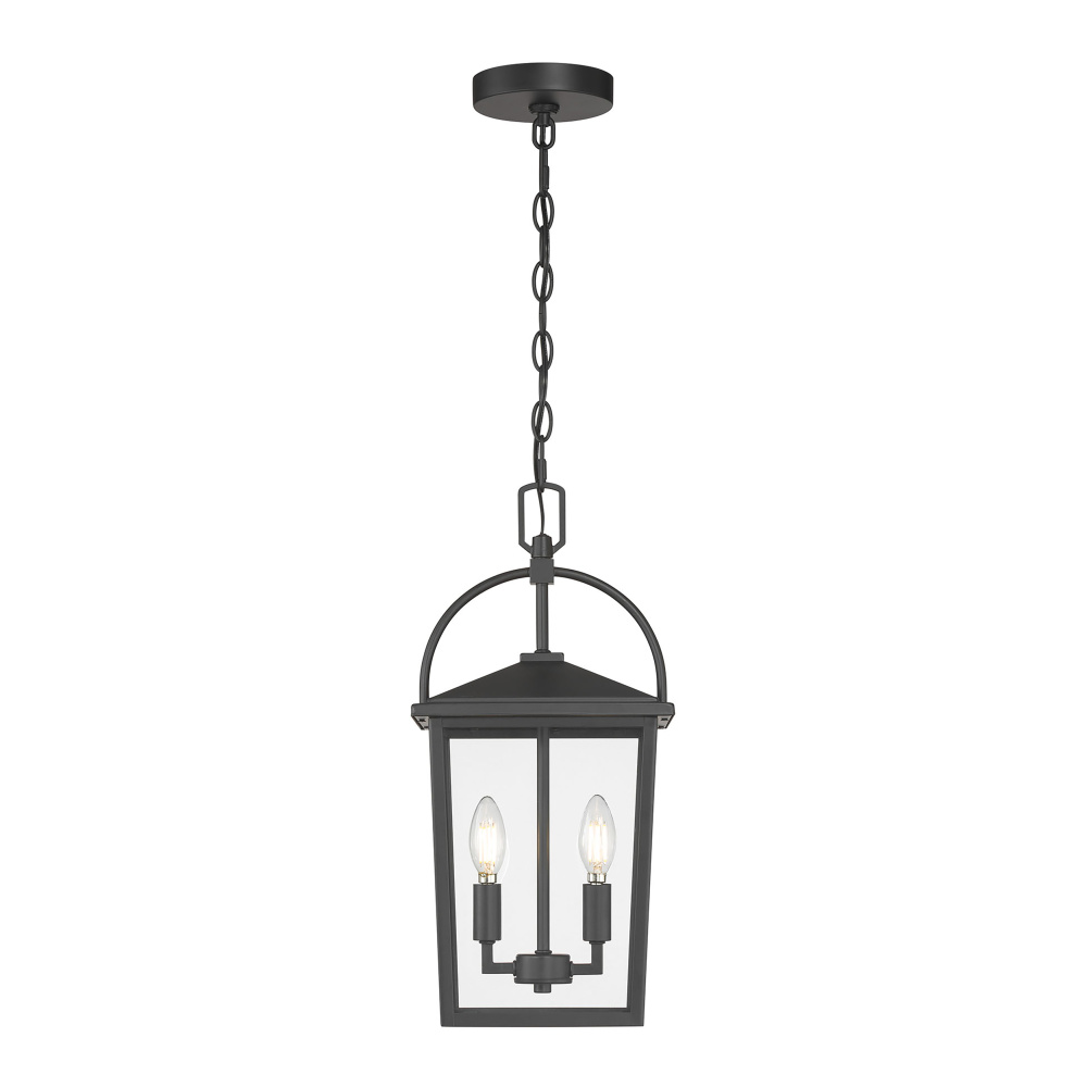 The Strathden Collection of exterior lighting is distinguished by its playful take on antique handheld lanterns. The oversized handle arcs gracefully over the classic shade perfectly framing the clear glass panels. Available as 1 or 2-light outdoor sconce, 2-light post and 2-light pendant, these classic fixtures are finished in powder coat black and create the perfect welcoming light from driveway to entryway.