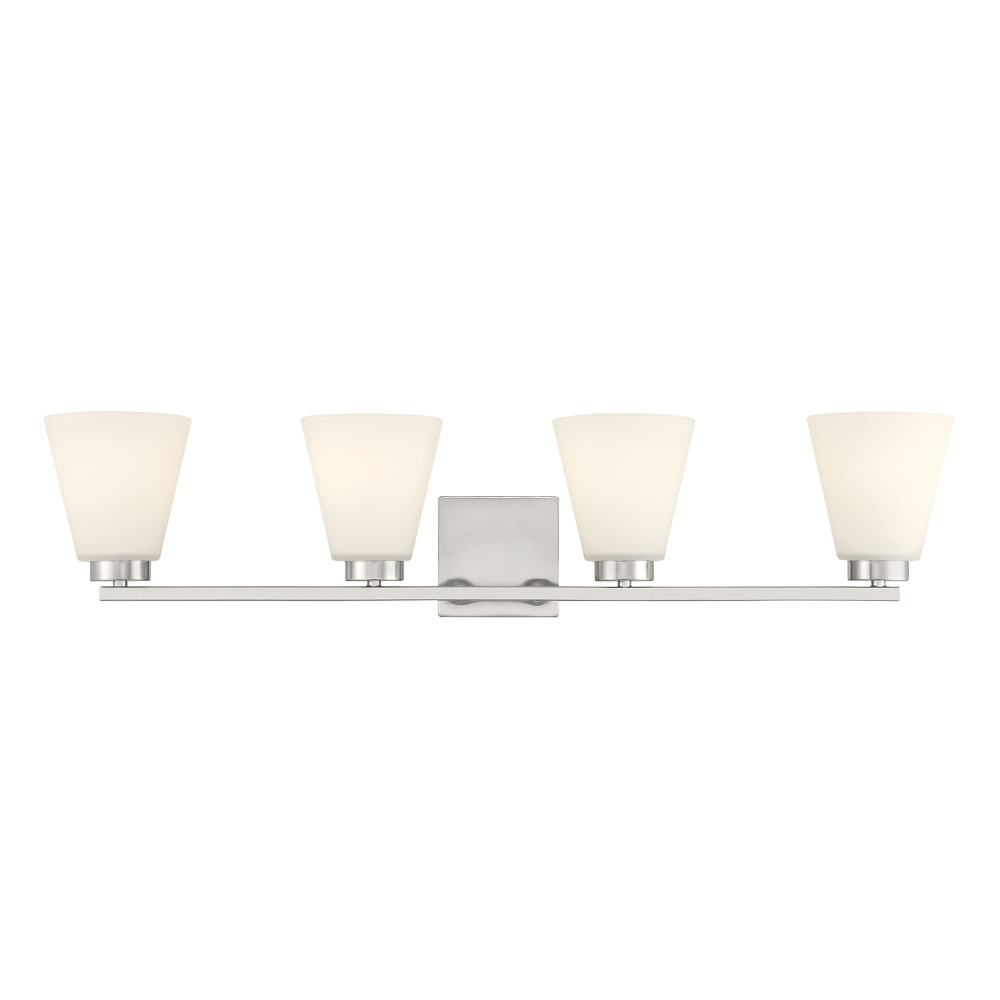 Featuring a Brushed Nickel finish with White Frosted glass shades.