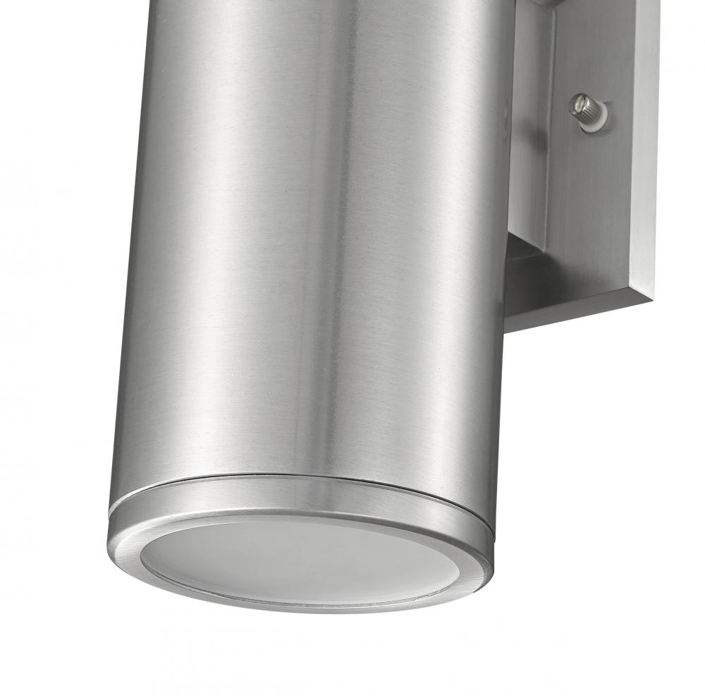 For an outdoor lighting solution that is as illuminating as it is subtle, the Vegas Collection satisfies any contemporary exterior needs. The sleek, cylindrical body of the aluminum fixture funnels light both upward and down for a more focused coverage and is perfect for walkways, courtyards, and entryways. The collection is finished in an exquisite powder coat of black or lustrous silver, with frosted glass for the perfect glow.
