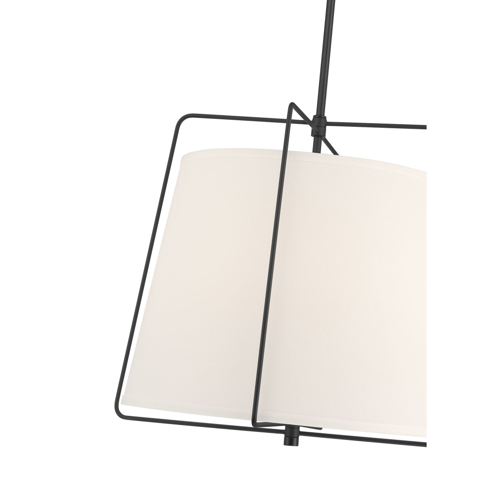 The Vellinor Collection of pendants features a stylish exterior metal framework surrounding a crisp white linen shade for a modernistic take on mid-century lighting design. Available as a 1 or 3-light pendant and finished in either classic matte black or vintage brass, these fixtures are as sophisticated as they are casual making them the perfect choice from foyer to kitchen.