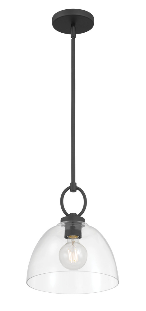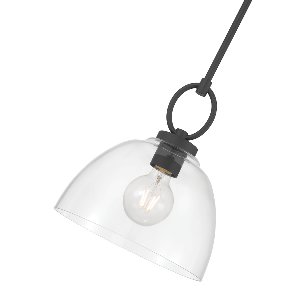 Featuring a Matte Black finish with a Clear glass shade.