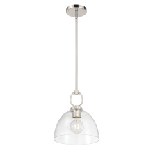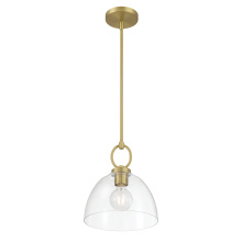Featuring minimalist lines and an artfully balanced down rod and ring, the Velto Collection of pendants creates a tasteful and luxurious design effect perfect for vintage to modern décor. The crystal-clear bell-shaped glass shade is the ideal complement to the overall design profile and is perfect for both ambient and task lighting. These sublime fixtures are a finished in either matte black, polished nickel, or vintage brass.