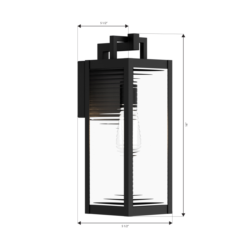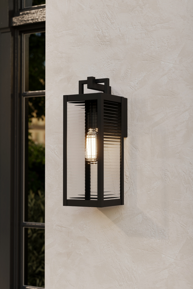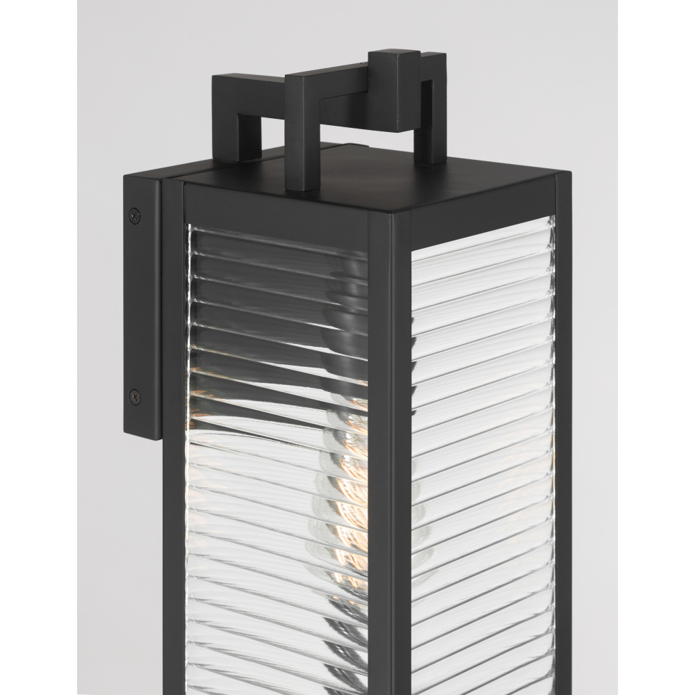 1-Light Outdoor Wall Sconce - Dark Matte Black with Clear Ribbed Glass