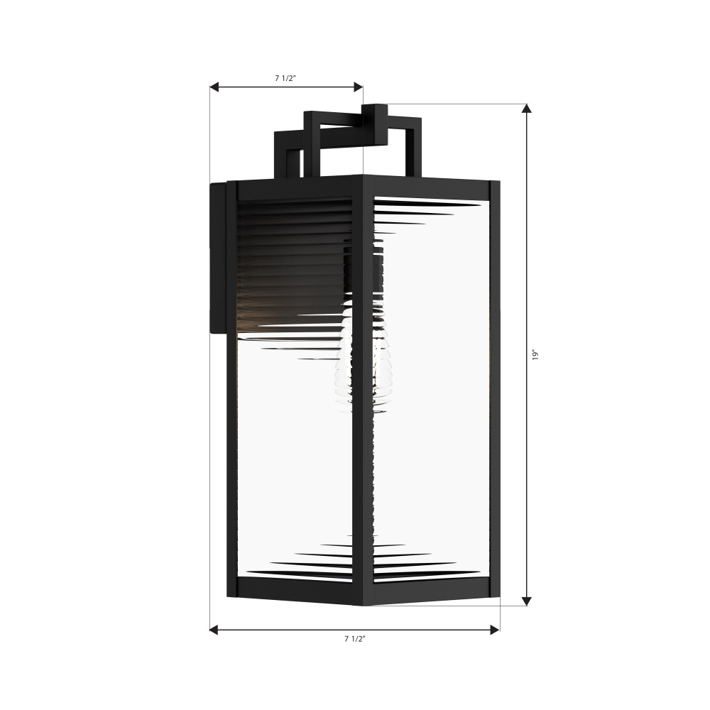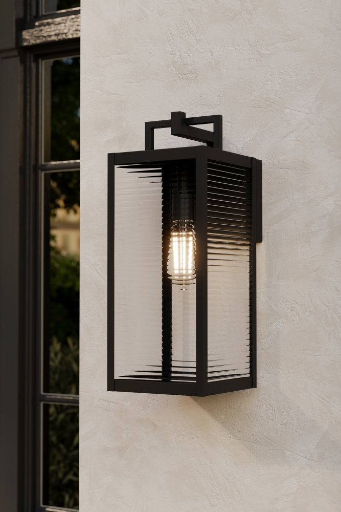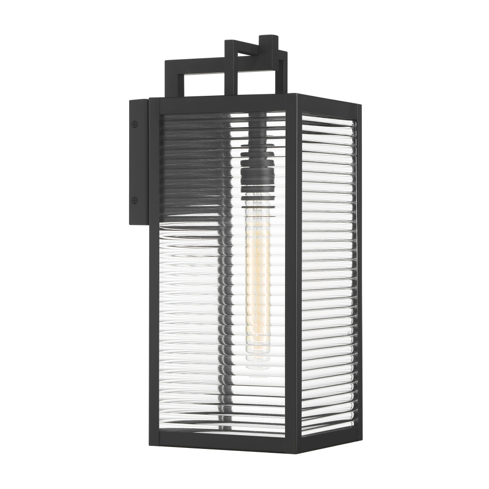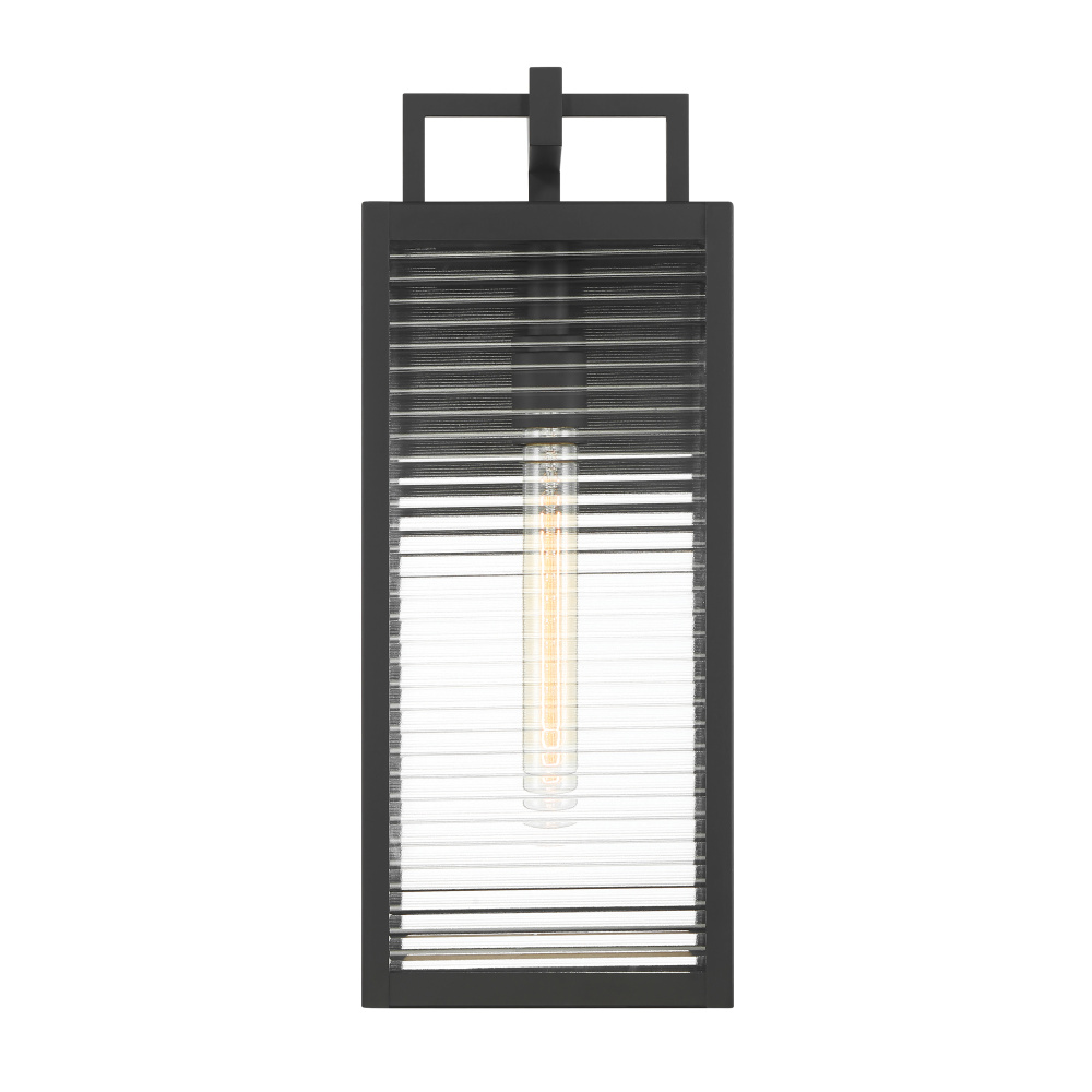 1-Light Outdoor Wall Sconce - Dark Matte Black with Clear Ribbed Glass