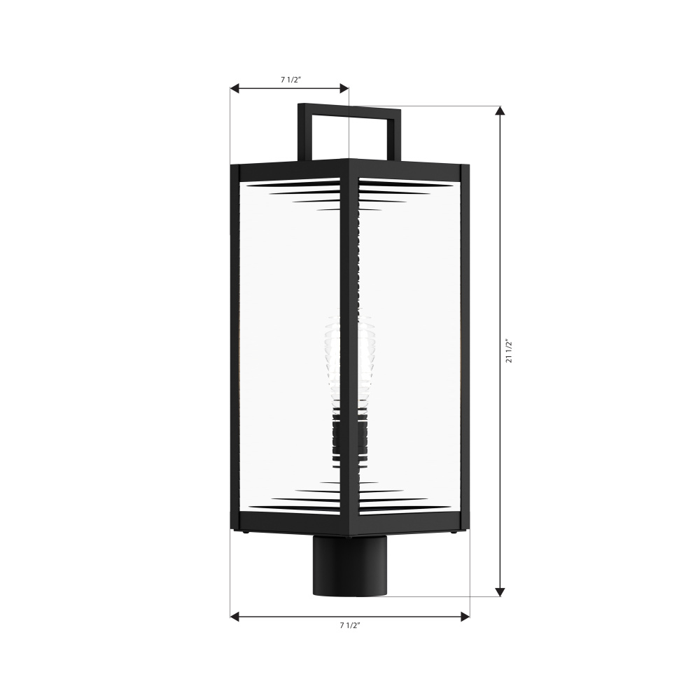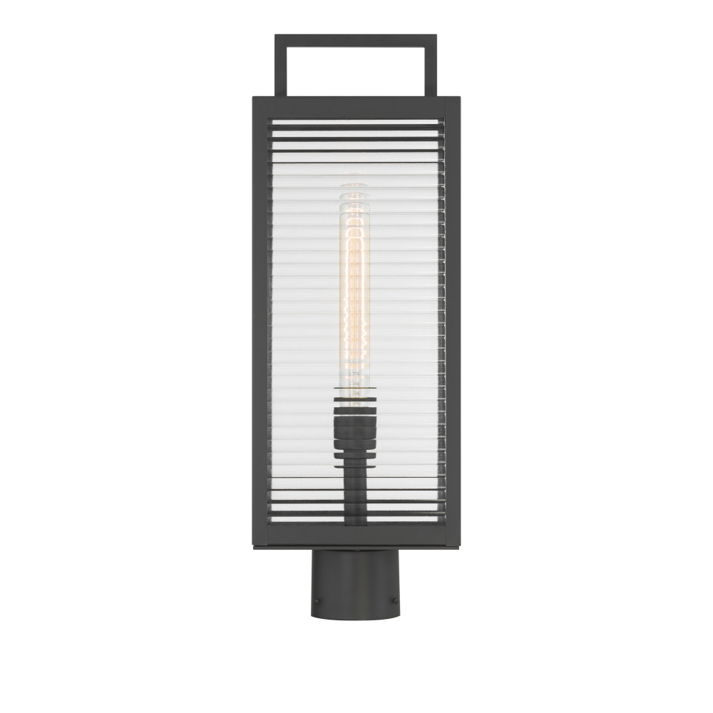 1-Light Outdoor Post Mount - Dark Matte Black with Clear Ribbed Glass