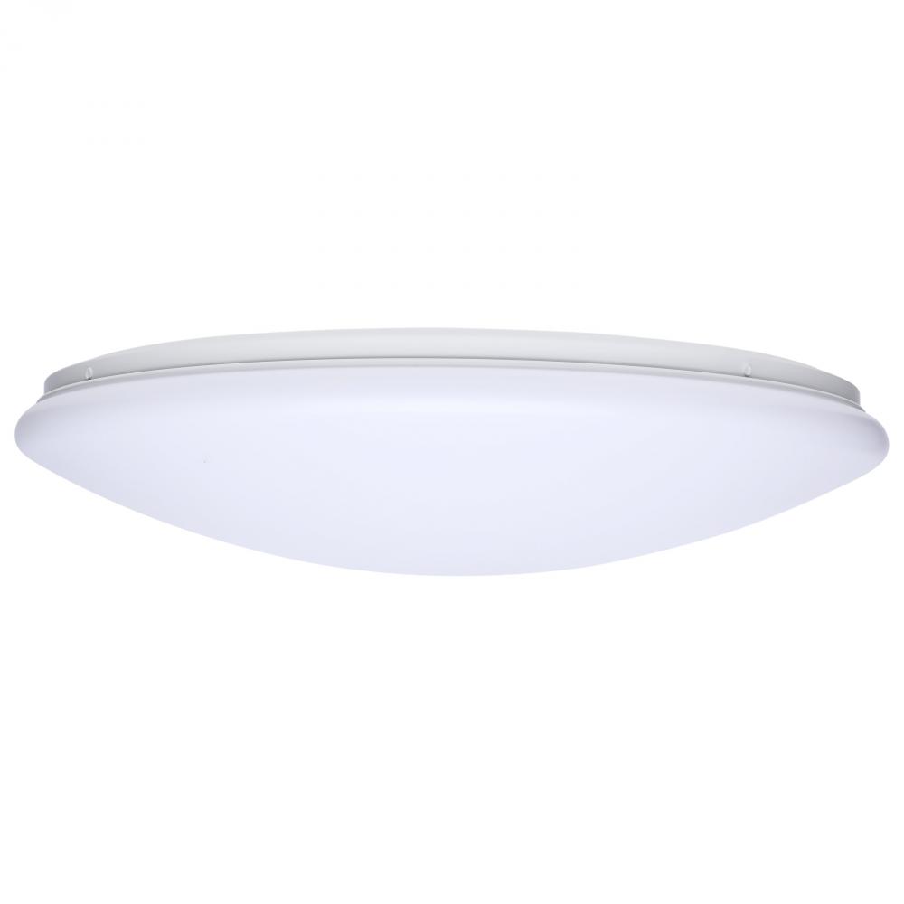 The SATCO NUVO 62-1858, 19-inch round LED Cloud fixture features 5 CCT selectable technology and a high 90 CRI rating, ensuring exceptional and uniform illumination. It is crafted with a durable, non-yellowing PMMA lens and is rated for damp locations, mak