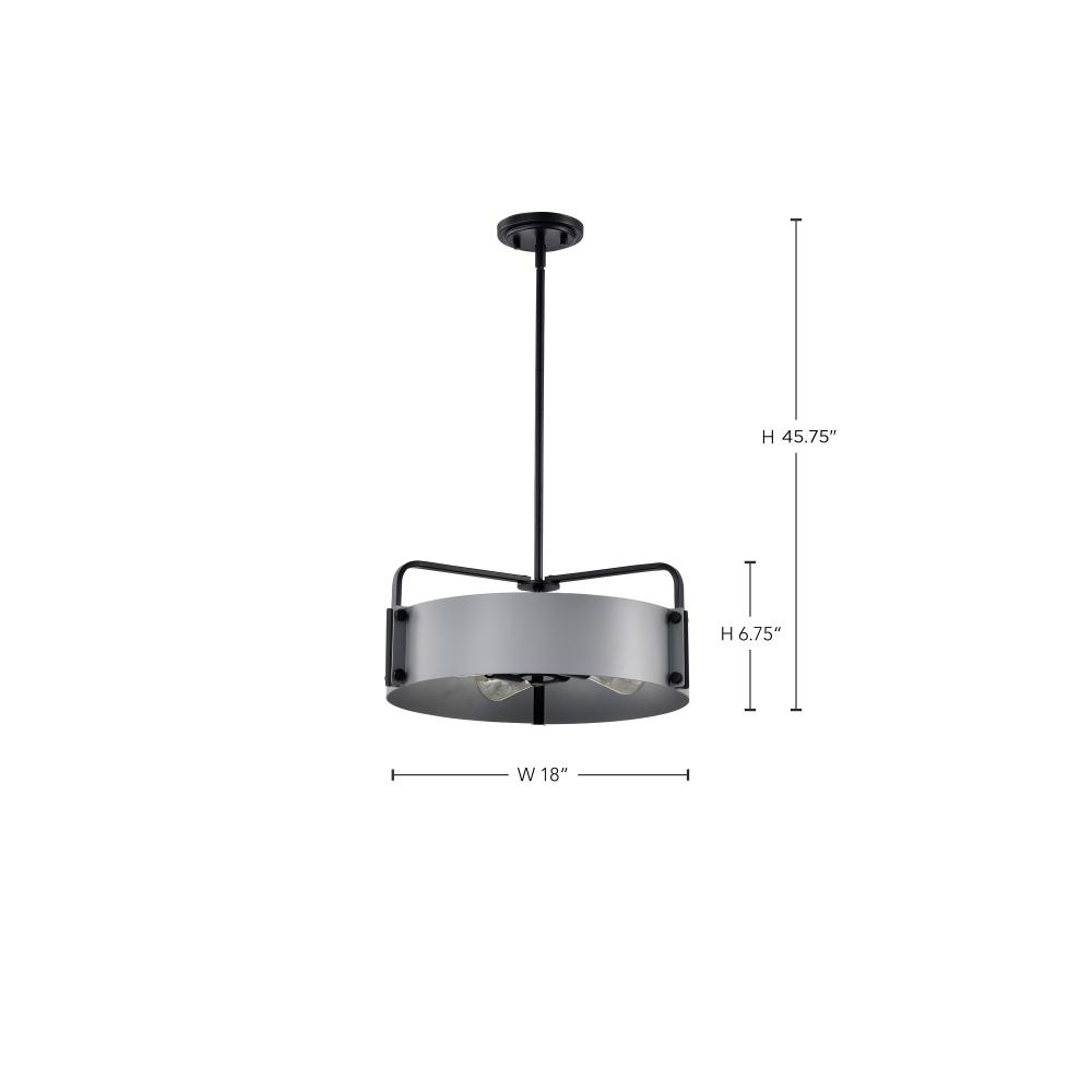 Altos 4 Light Medium Pendant; Gray and Matte Black Finish