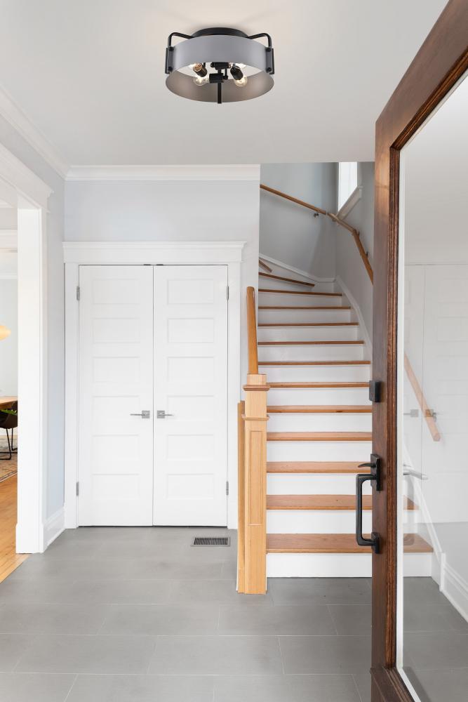 The Altos 60-7851 large semi-flush mount adds a touch of drama and intrigue to any space. The gray accents provide a coolness to the industrial-inspired construction, which is finished in a velvety, matte black. The meticulous attention to detail in the la