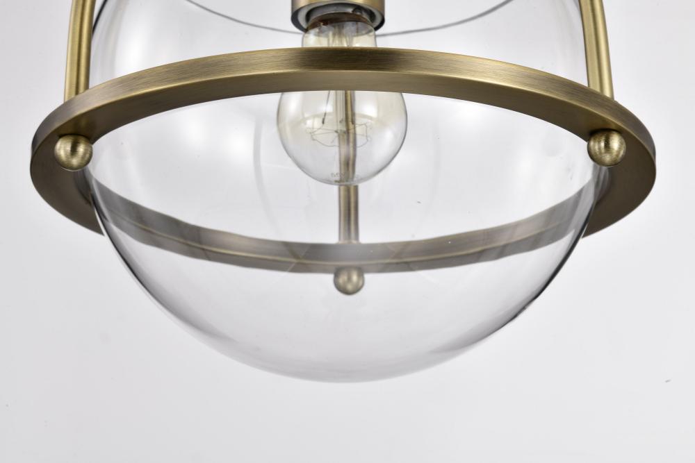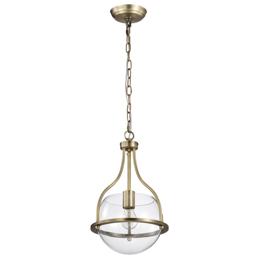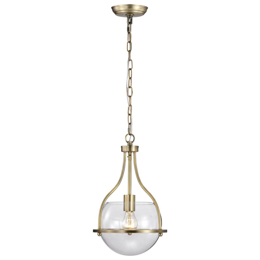 Elegant, transitional allure completes the Amado 60-7815 small pendant with it's unassuming style. The glow of vintage brass creates a warm ambiance and the clear glass bowl delicately showcases the light and is encompassed in graceful lines to exude c