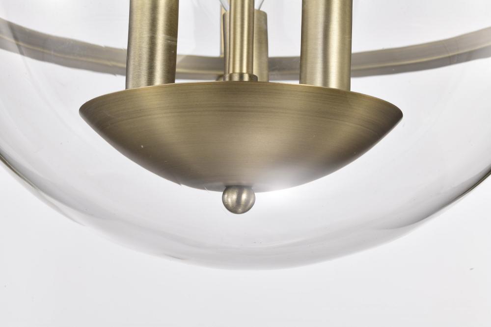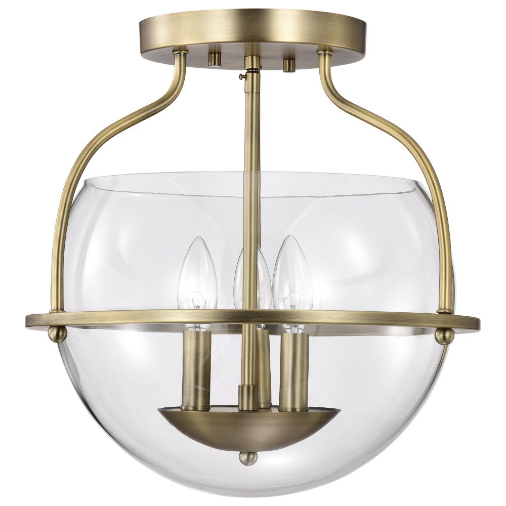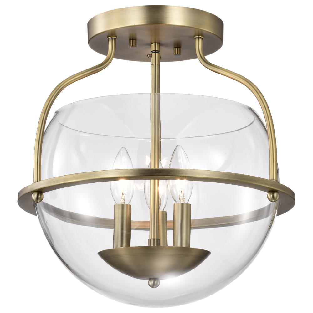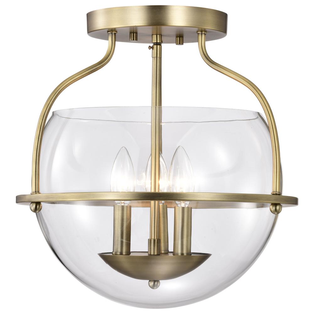 Elegant, transitional allure completes the Amado 60-7821 medium semi-flush mount with it's unassuming style. The glow of vintage brass creates a warm ambiance and the clear glass bowl delicately showcases the light and is encompassed in graceful lines