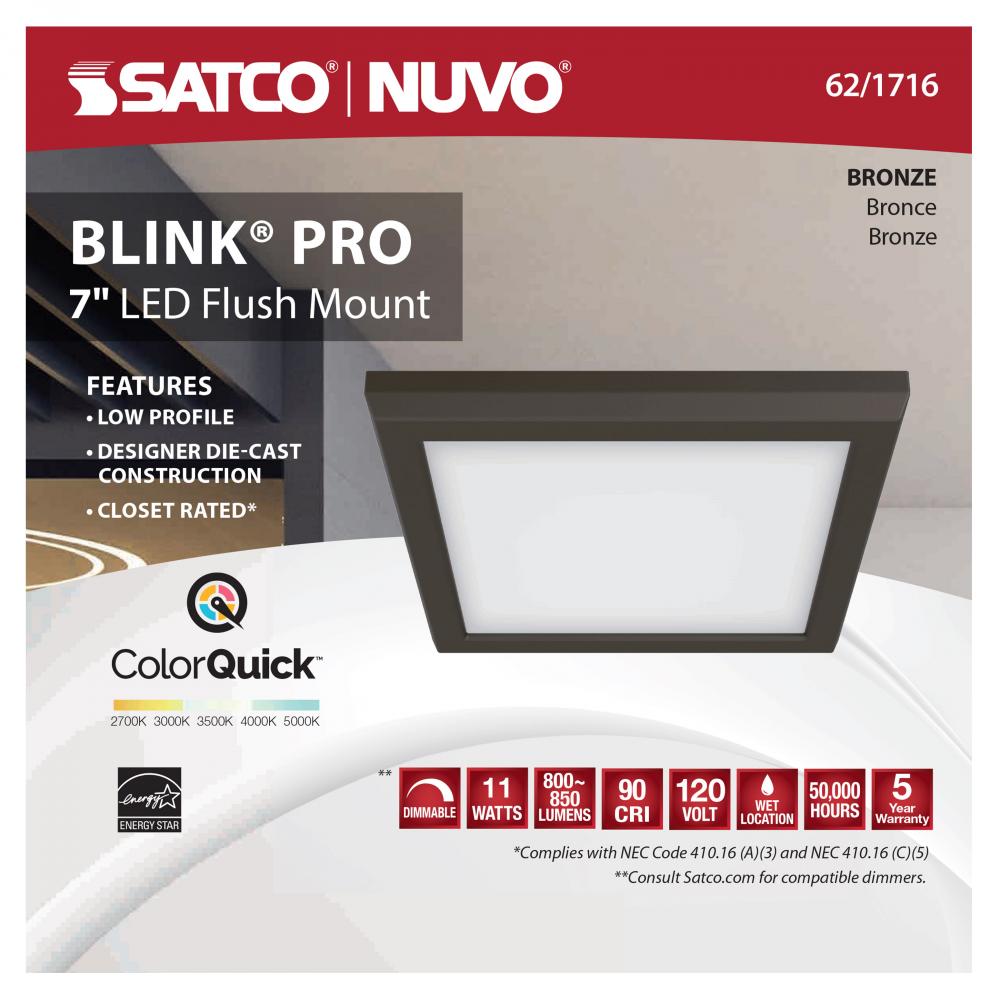 Blink Pro - 11W; 7in; LED Fixture; CCT Selectable; Square Shape; Bronze Finish; 120V